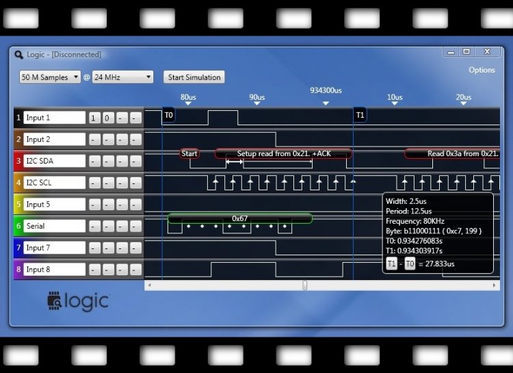 It can be used in many medium level applications easily with sampling frequency which can be reached up to 24 MHz. 8 different channel can be controlled with 8 digital input pins. Easy and comfortable usage can be provided with 2 ground line. It can be used with lots of microcontrollers such as Arduino. Each developer must have this device, regardless of the size of the project. You can see 0's and 1's that are between two nodes with the logic analyzer easily.