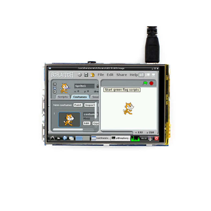 3.5" TFT LCD Touch Display is used by adding it to Raspberry Pi as an alternative to a HDMI monitor and it allows you to make a real mobile computer by saving you from the clutter of monitor, keyboard, mouse cable.