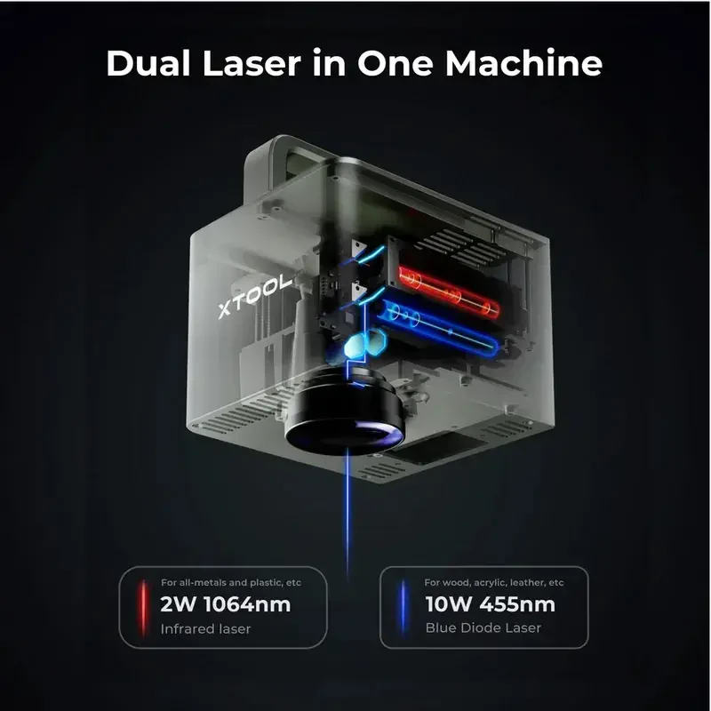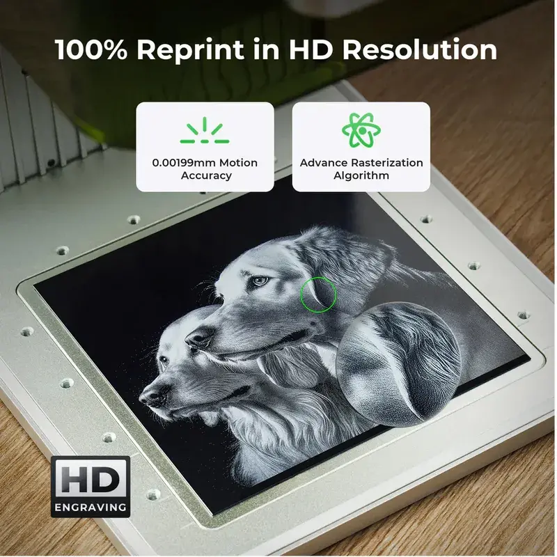 The F1 delivers superior performance in engraving operations thanks to its dual laser technology, providing users with fast and precise results. Capable of handling even the finest details flawlessly, this machine can engrave on various materials including metal, wood, glass, plastic, and more.
