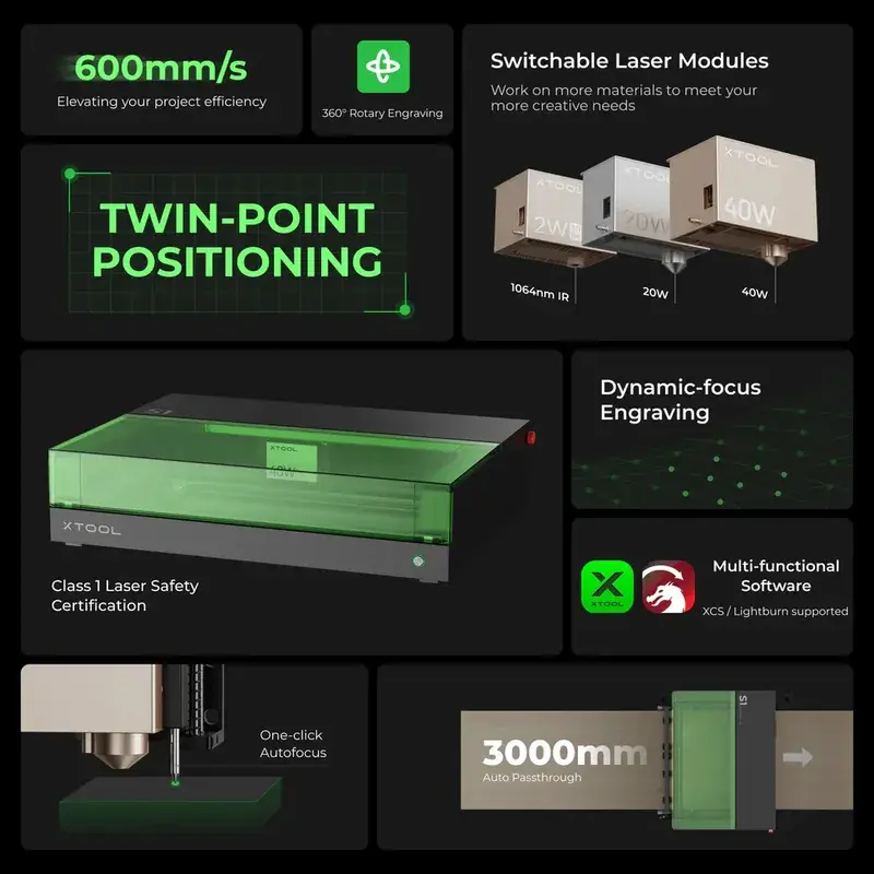xTool S1 Dark Basic Kapalı Diyot Lazer Kesici - 20W Teknik Özellikleri: