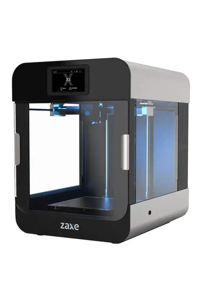 Zaxe X3, ısı yalıtımlı yapısı ile profesyoneller için ekonomik bir çözüm olarak tasarlandı. 220 x 230 x 250mm tam kapalı baskı kabini, çift taraflı manyetik PEI baskı tablası ve otomatik kalibrasyona sahiptir.